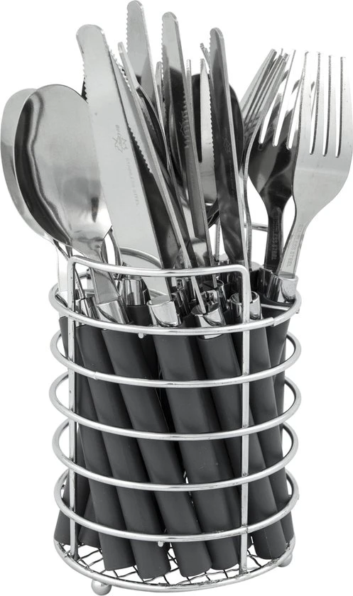 Complete 24-delige bestekset voor kampeerders, inclusief handig opbergmandje