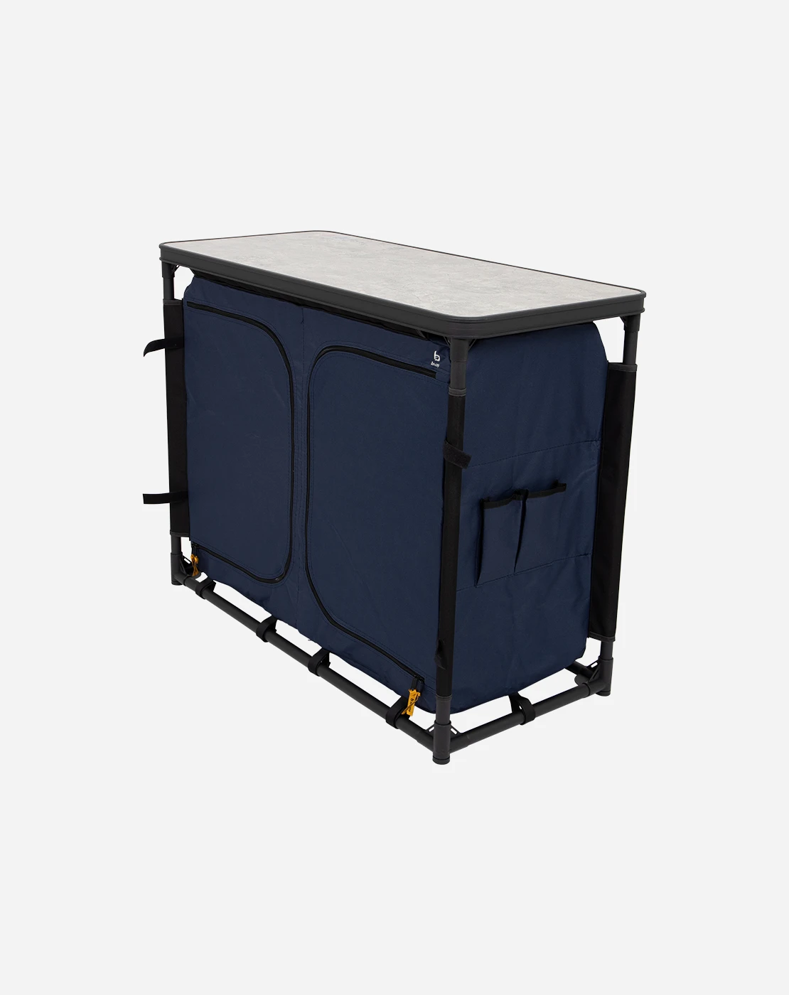 De duurzame constructie van het kookeiland zorgt ervoor dat je potten en pannen stevig blijven staan, met verstelbare poten die je maximale stabiliteit geven, zelfs op de meest oneffen kampeergrond. Denk bijvoorbeeld aan koken op een rotsachtige ondergrond of een zanderig strand – niets is een probleem voor dit eiland. Het stevige aluminium blad en het polyester doek zijn niet alleen onderhoudsvriendelijk, maar ook bestand tegen de elementen, zodat jij zorgeloos kunt kokkerellen.