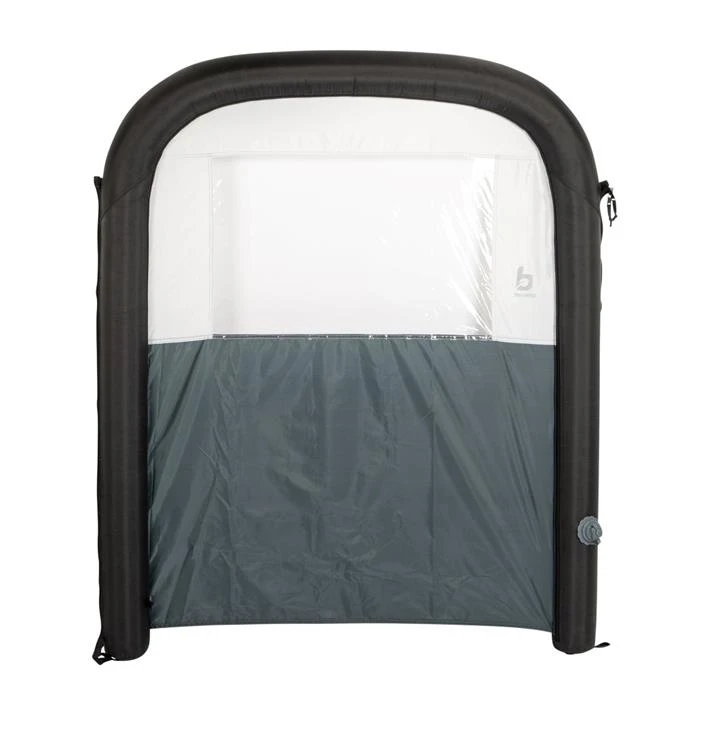 Innovatief opblaasbaar windscherm met handige ritsfunctie voor eenvoudige doorgang