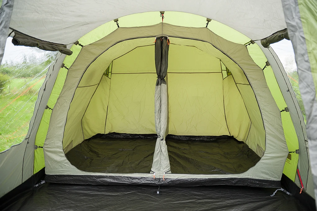 Thuis én op vakantie in een grote slaapkamer slapen? Deze tunneltent heeft één groot slaapvertrek, die je met de inritsbare tussenwand verdeelt in twee ruime slaapkamers. Het hele slaapvertrek is 280 x 210 centimeter. Met de scheidingswand maak je hier twee kamers van 140 x 210 centimeter van.Â