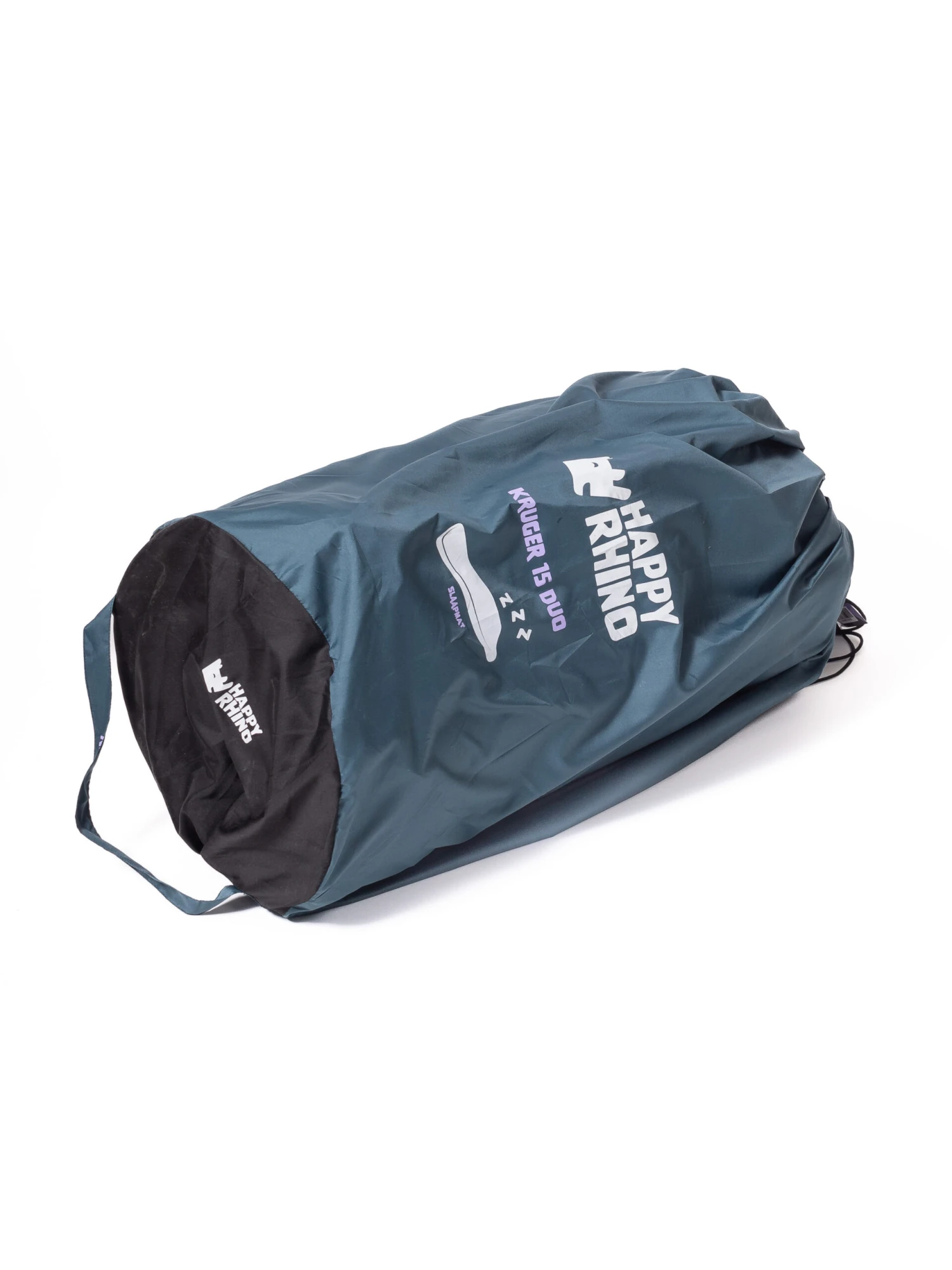 De Happy Rhino SI-mat Kruger 15 Duo is perfect als je met je partner of gezin met de auto, caravan of camper op vakantie gaat. De Kruger 15 Duo blaast zichzelf op, is 15 centimeter dik en voelt lekker warm aan. Dit komt door de combinatie van open-cel-schuim met een luchtdicht omhulsel, waardoor lucht niet zal circuleren en je rug warmer aanvoelt. Met de juiste slaapzak erbij heb je het ’s nachts op de camping nooit meer koud.Â