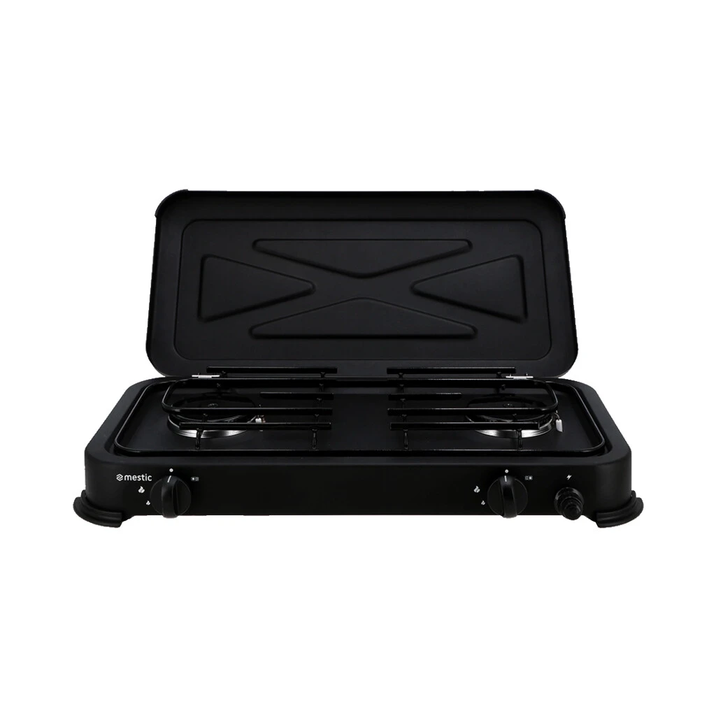 Dit kooktoestel is ideaal voor je kampeertrip. Hij is voorzien van twee sterke branders (2 x 2,2 kW) en werkt met elektrische ontsteking. Doordat je de pandrager kunt verwijderen, is hij extra gemakkelijk te reinigen.