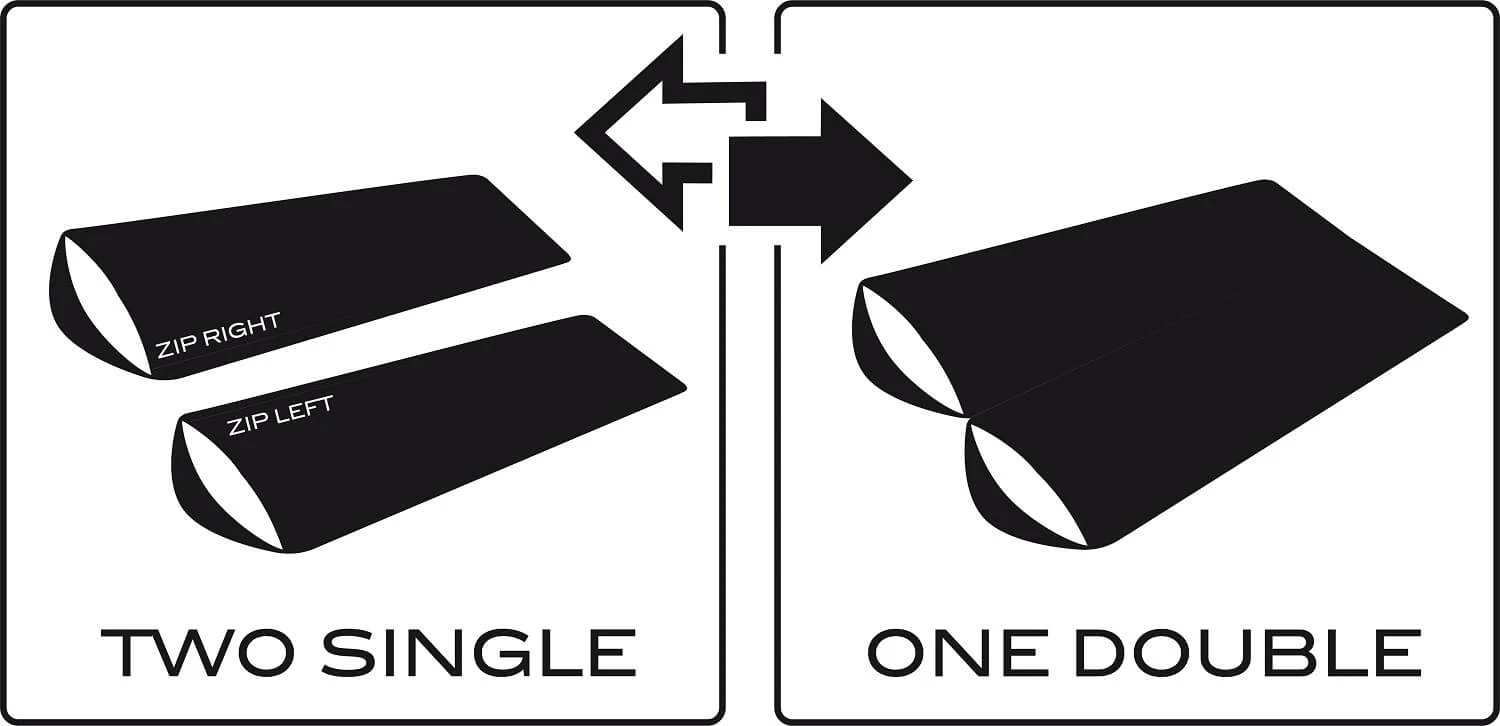 De slaapzak is verkrijgbaar met een linker- of een rechterritssluiting. Deze slaapzak heeft de ritssluiting aan de rechterkant.Â