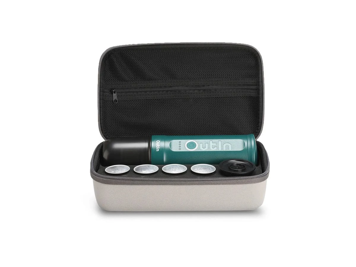 De OutIn Nano beschermkoffer is een compacte opbergoplossing voor de OutIn Nano. Daarnaast is er ruimte om capsules en kleine benodigdheden zoals melk, suiker, lepeltjes of servetten mee te nemen.