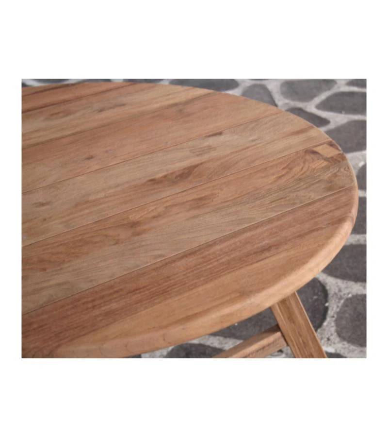 Waarom kiezen voor saai als je stijl kunt hebben met een goed geweten? Deze tafel is gemaakt van teakhout, wat bekend staat om zijn stevigheid en weerbestendigheid. Perfect voor die spontane borrels buiten waarbij de avond misschien net wat frisser wordt dan verwacht. Zet er een paar kaarsen op, en voilà , je hebt binnen no-time een magisch hoekje gecreëerd.