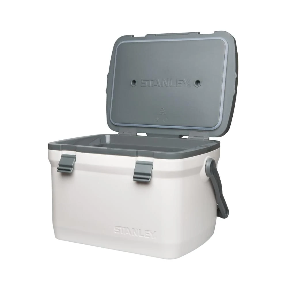 De Easy Carry Outdoor koelbox van Stanley is ideaal voor onderweg. Dankzij de dubbele schuimisolatie blijft de inhoud tot wel 27 uur gekoeld – genoeg voor 9 blikjes – en blijft ijs zelfs langer dan een etmaal bevroren. Ondanks zijn stevige bouw is de koelbox licht van gewicht en voorzien van een solide handgreep en duurzame sluiting, waardoor hij perfect is voor een dag vissen, een festival of een kampeertrip. Bovenop zit een verstelbaar bungeekoord, handig om extra spullen zoals flessen vast te zetten. Met een inhoud van 6,6 liter en een lekvrij ontwerp is dit een praktische en betrouwbare metgezel voor elk buitenavontuur.